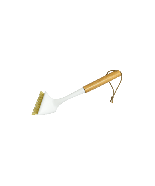 Doğal ahşap sap, ergonomik yapısı sayesinde elde rahat bir tutuş sağlarken mutfaklara şık bir görünüm kazandırır. Dayanıklı ve sert kıl yapısı, inatçı kirleri yüzeye zarar vermeden etkili şekilde temizler. Askı ipi detayı, kullanım sonrası kolay saklama ve hijyenik kurutma imkânı sunar.